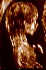 Der Kleine im Bild links könnte sagen: "Meine Nackentransparenz ist in Ordnung. Und ich habe ein Nasenbein und fünf Finger an der Hand. Und du?" Seine Nackentransparenz beträgt 1.3 mm und ist damit im Normbereich.
