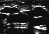 Die folgende Bildreihe zeigt von links nach rechts Zysten, einen gutartigen Knoten Mitte) und ein kleines Karzinom (rechts).